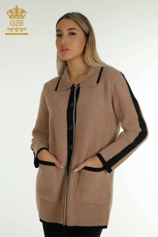 Cardigan cu ridicata pentru femei, cu buzunar de angora, detaliat din nurcă - 30444 | KAZEE
