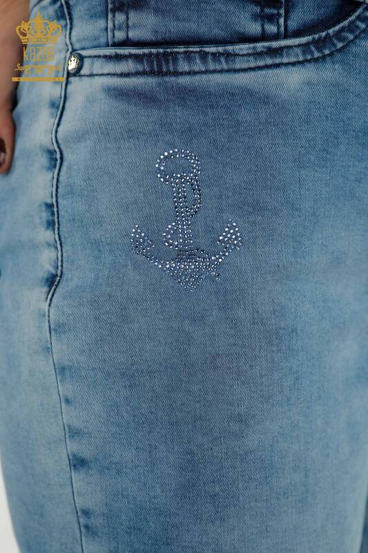 Capri cu ridicata pentru femei cu centura brodata cu piatra albastra - 3504 | KAZEE