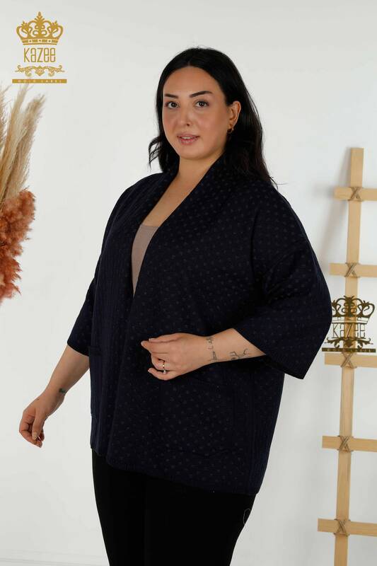 Cardigan en-gros pentru femei cu detaliu de buzunar Bleumarin - 30056 | KAZEE