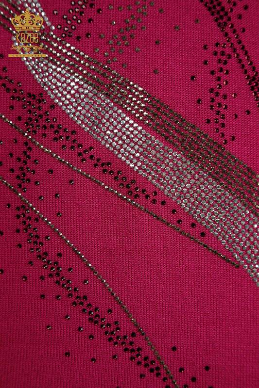 En-gros Tricotaj pentru femei Pulover Crystal Stone Brodat Guler Stand Fuchsia - 30469 | KAZEE