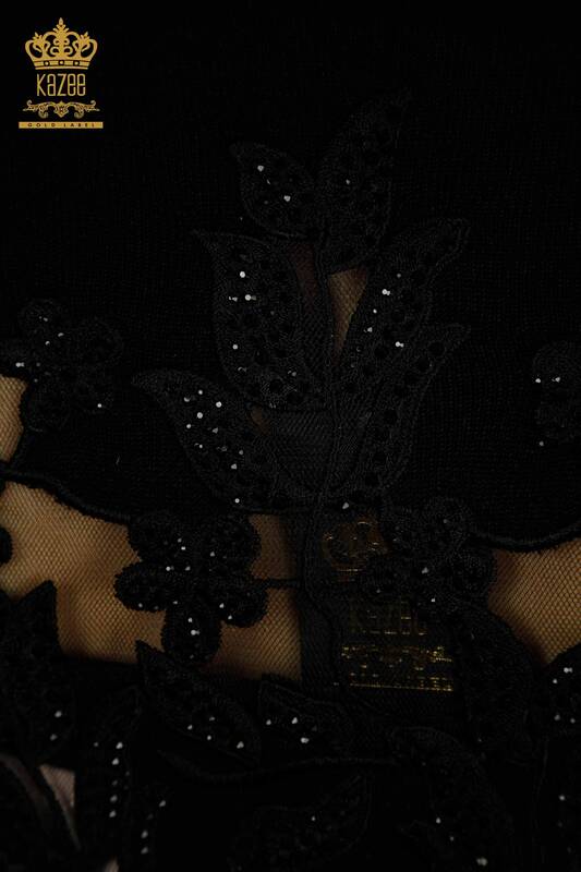 Tricotaj de damă cu ridicata Pulover mânecă trandafir tul brodat negru - 15374 | KAZEE