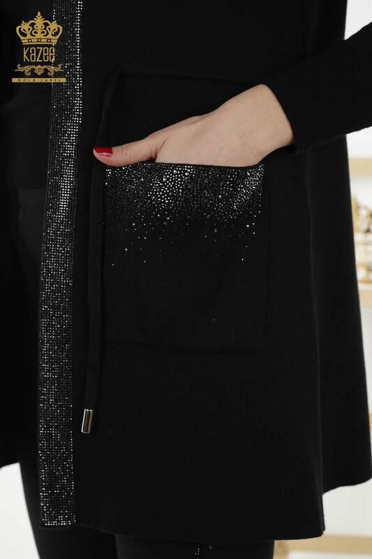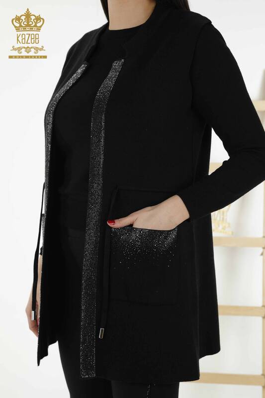 Vesta cu ridicata pentru femei, cu piatra leopard brodata, buzunar negru - 30308 | KAZEE