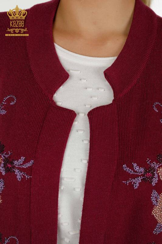 Vesta cu ridicata pentru femei, cu piatra brodata florala, liliac - 30644 | KAZEE