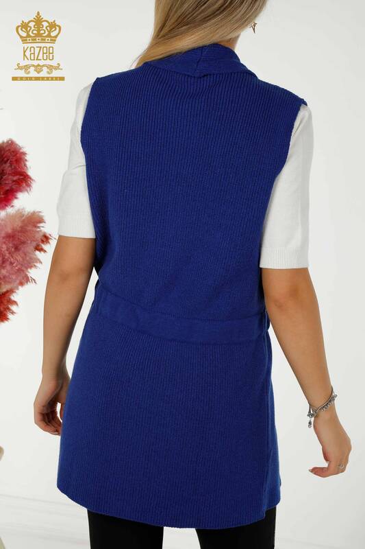 Vestă cu ridicata pentru femei cu cravată de frânghie - 30410 | KAZEE