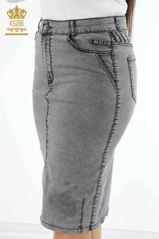 Cu ridicata Fusta de blugi pentru femei cu detaliu Kazee brodat cu piatră colorată și buzunare - 4180 | KAZEE