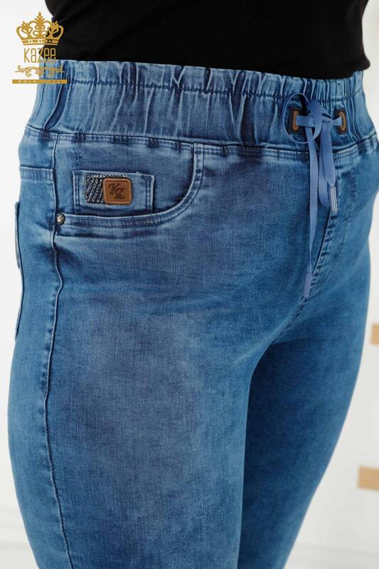 Blugi de damă cu ridicata cu buzunar în talie elastică Albastru - 3698 | KAZEE