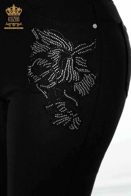 En-gros Blugi de damă cu model Crystal Stone Brodat Buzunar Negru - 3565 | KAZEE