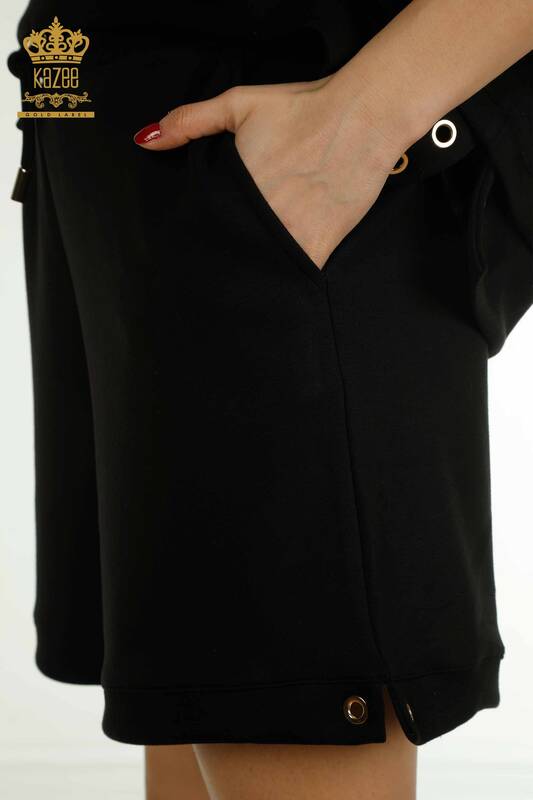 Set de trening cu glugă cu glugă cu buton detaliat negru - 17695 | KAZEE