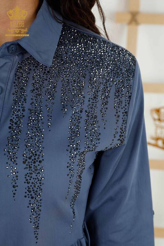 Rochie de damă cu ridicata cu nasturi cu piatră de cristal brodat Indigo - 20229 | KAZEE
