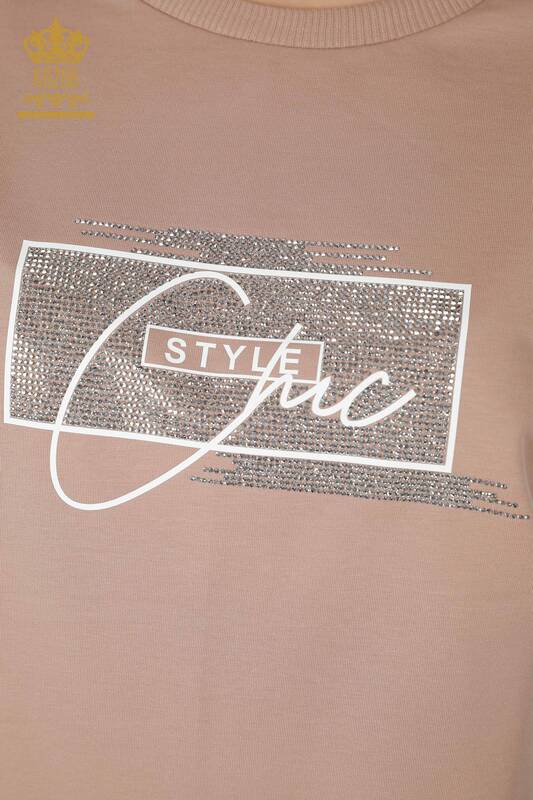 Set de trening en-gros pentru femei, detaliu text brodat Crystal Stone, buzunar nurcă - 17461 | KAZEE