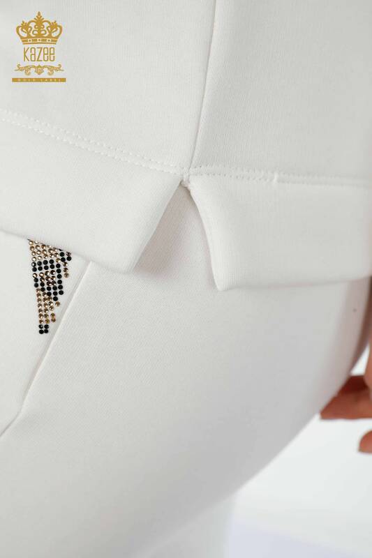 Set de trening pentru femei cu ridicata cu model Tigru, brodat cu piatra Ecru - 17473 | KAZEE
