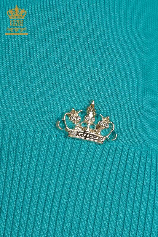En-gros Tricotaj pentru femei Pulover American Model Basic Turcoaz cu Logo - 15943 | KAZEE