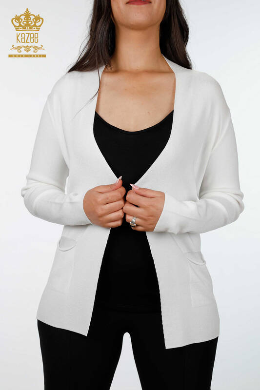 Tricotaj cu ridicata pentru femei Cardigan Buzunar lung Detaliat Viscoza - 15744 | KAZEE