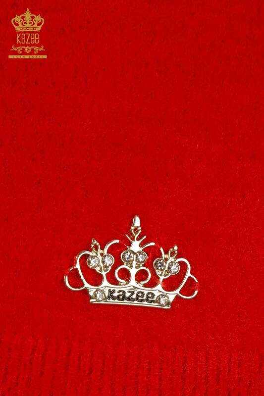 Tricotaj cu ridicata pentru femei Pulover Angora Basic Guler înalt Roșu - 30610 | KAZEE