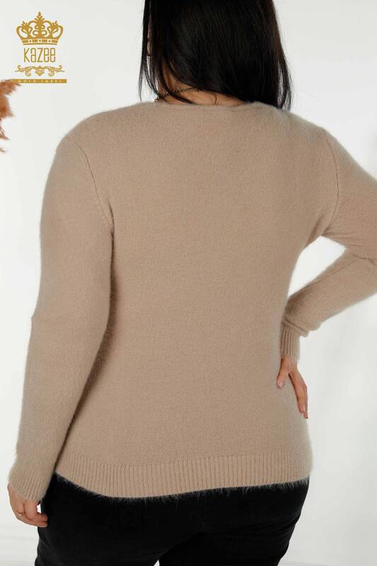 Tricotaje cu ridicata pentru femei Pulover Angora Basic Logo Bej - 18921 | KAZEE