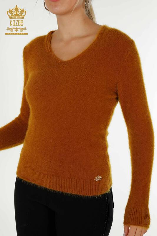 En-gros Tricotaj pentru femei Pulover Angora Gât în V Basic Mustard - 12047 | KAZEE