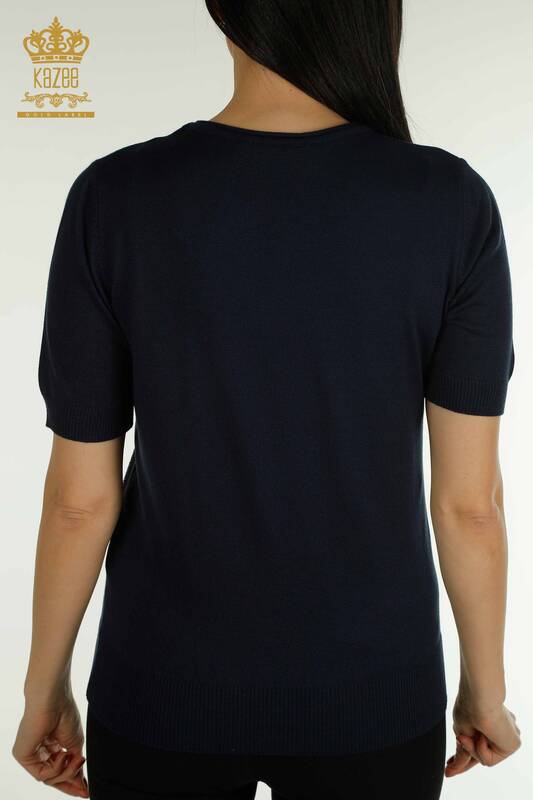 Tricotaj de damă cu ridicata Pulover American Model Stone Brodat Bleumarin - 30686 | KAZEE