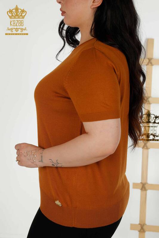 Tricotaje cu ridicata pentru femei Pulover Basic American Model Logo Tan - 16271| KAZEE
