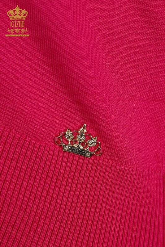En-gros Tricotaj pentru femei Pulover American Model Basic Logo Fuchsia - 30443 | KAZEE