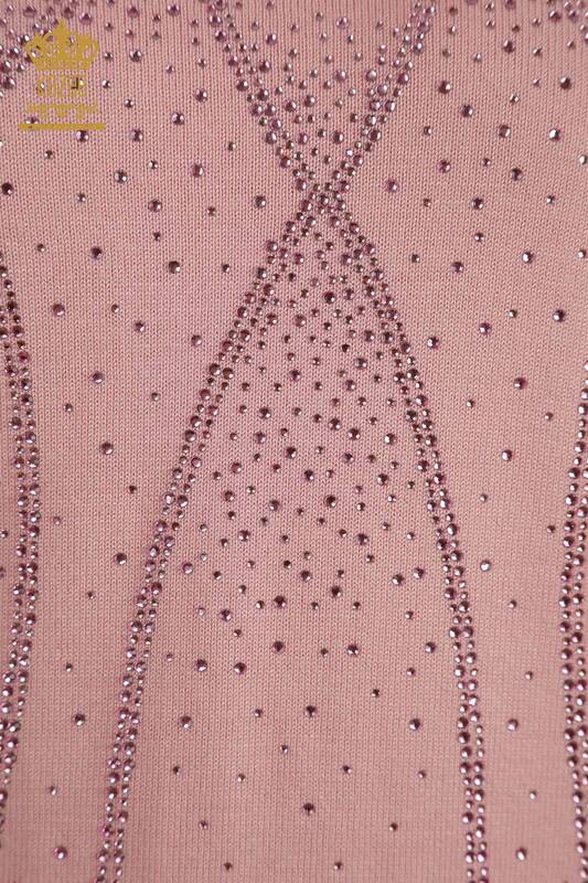 En-gros Tricotaj pentru femei Pulover American Model Stone Brodat Roz - 30686 | KAZEE