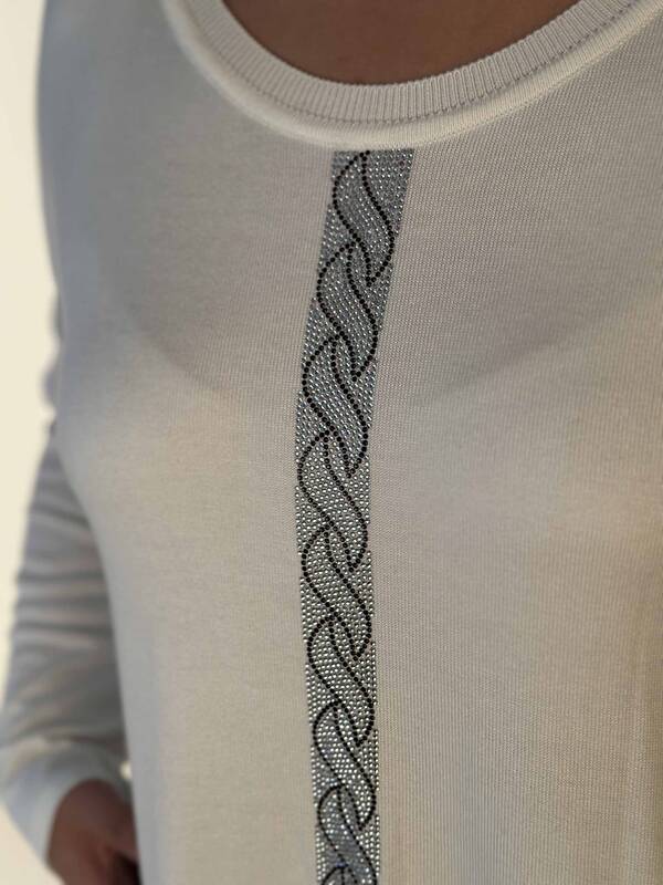 Wholesale Women's Knitwear Sweater Pocket Detailed Stone Embroidered Crew Neck Ecru - 30622 | KAZEE