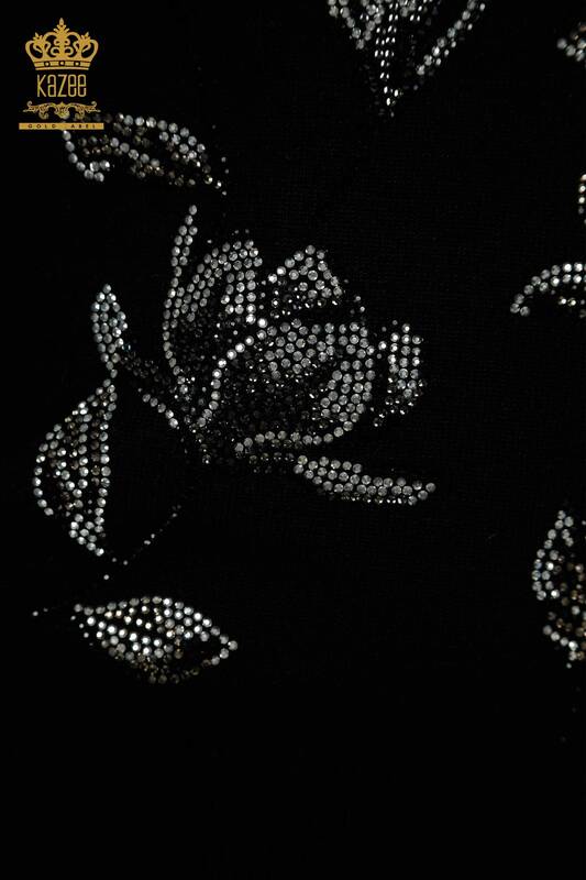 Tricotaj cu ridicata pentru femei Pulover cu piatra brodata cu model de flori negru - 30471 | KAZEE