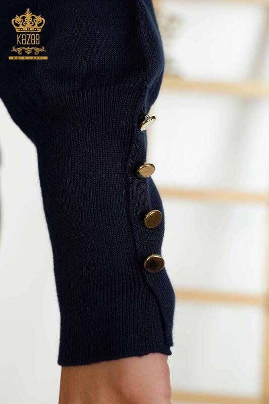 En-gros Tricotaj pentru femei Pulover Button Detaliat Decolteu în V Bleumarin - 30139 | KAZEE