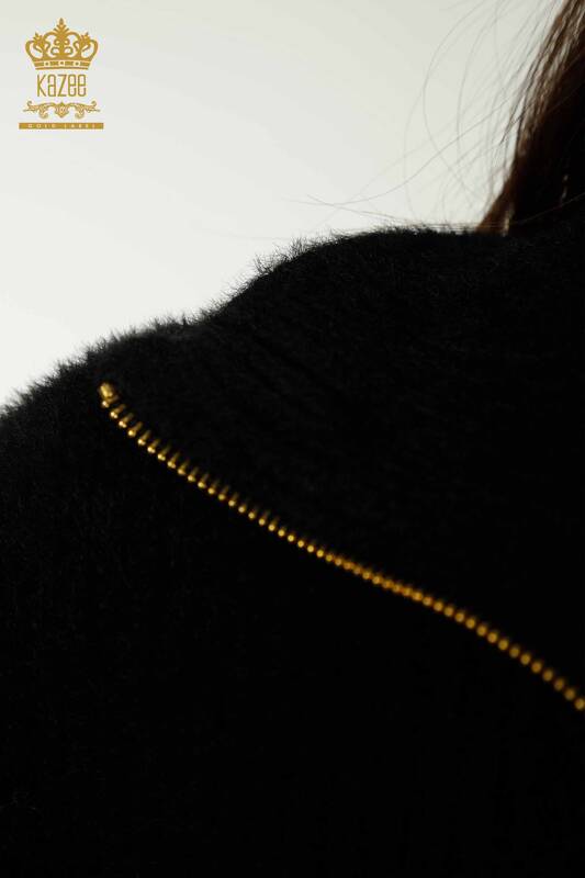 Tricotaj de damă cu ridicata Angora Stone Beaded Fermoar Negru - 30769 | KAZEE