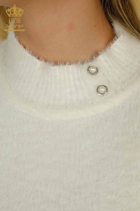 En-gros Tricotaj pentru femei Pulover Angora Button Detaliat Ecru - 30667 | KAZEE