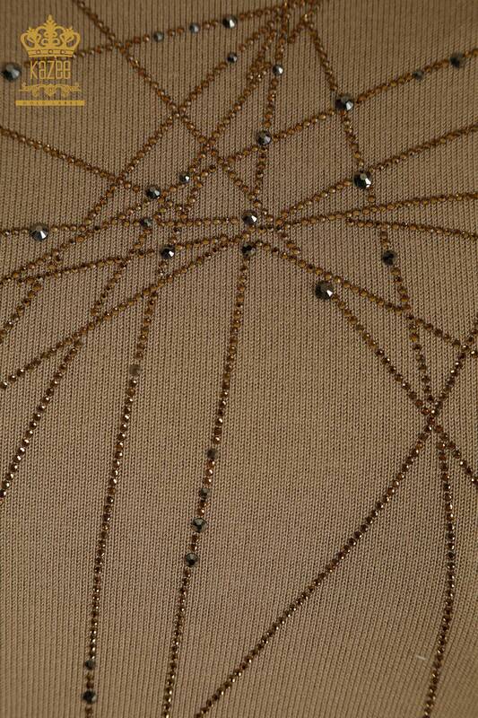 En-gros Tricotaj pentru femei Pulover Guler Stand Pietra Brodata Maneca lunga Bej - 30454 | KAZEE