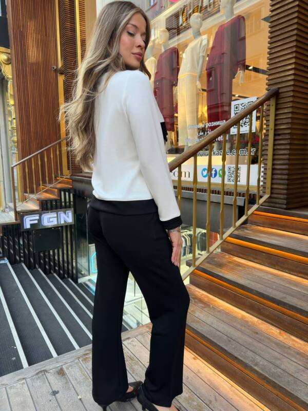 Eşofman Takımı Düğme Detaylı Ekru Siyah - 17977 | KAZEE (3'lü Set M-L-XL)