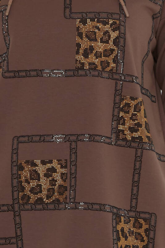 Eşofman Takımı Kare Taş İşlemeli Leopar Desenli Kahve - 17899 | KAZEE (3'lü Set M-L-XL)