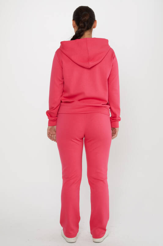 Eşofman Takımı Şerit Taş İşlemeli Kapüşonlu Fuşya - 17597 | KAZEE (4'lü Set M-L-XL-2XL)