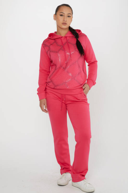 ست لباس ورزشی فوشیا سرپوش سنگ دوزی شده - 17557 | KAZEE (مجموعه 4 عددی S-M-L-XL)