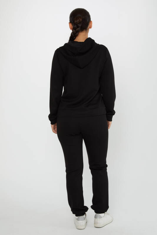 طقم رياضي كم طويل مطرز بالحجر أسود - 17559 | كازي (مجموعة من 4 M-L-XL-2XL)