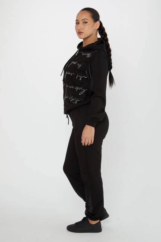 Trainingsanzug-Set Schwarz mit Textdetail und Reißverschluss – 17476 | KAZEE (4er-Set S-M-L-XL)