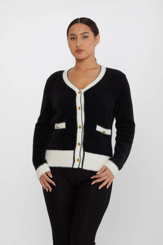 جیبی آنگورا ژاکت کش باف پشمی با جزئیات مشکی دکمه دار - 30627 | KAZEE (مجموعه 4 عددی S-M-L-XL)