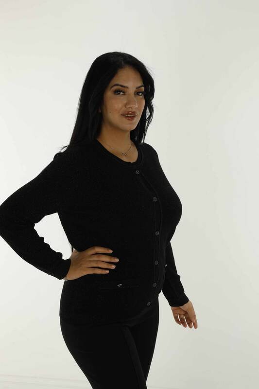 ژاکت بافتنی براق یقه خدمه ژاکت کش باف پشمی مشکی - 30039 | KAZEE