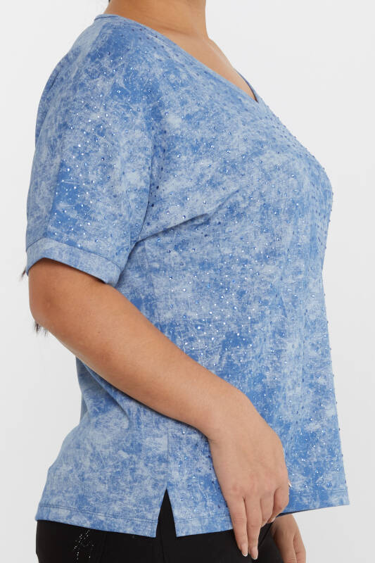 بلوز سنگ دوزی V یقه آبی - 79985 | KAZEE (ست 3 M-L-XL)