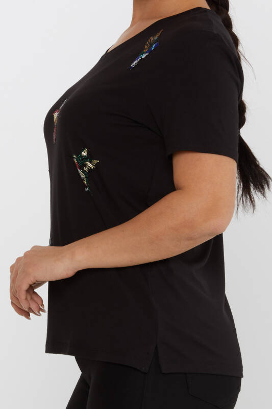 بلوز سنگ پرنده دوزی V یقه مشکی - 80111 | KAZEE (ست 3 M-L-XL)