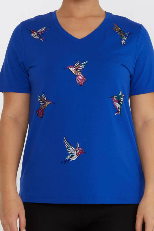 بلوز سنگ پرنده دوزی ساکس دور گردن - 80111 | KAZEE (ست 3 M-L-XL)