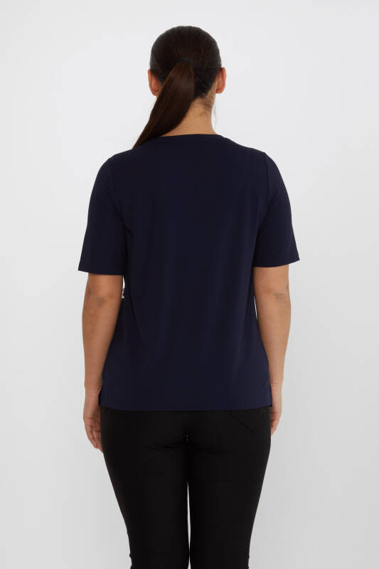 بلوز روبانی طرح دار آستین کوتاه آبی سرمه ای - 80050 | KAZEE (ست 3 M-L-XL)