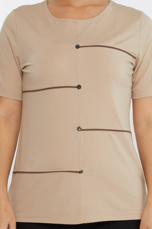بلوز ستاره ای آستین کوتاه بژ - 80061 | KAZEE (ست 3 M-L-XL)