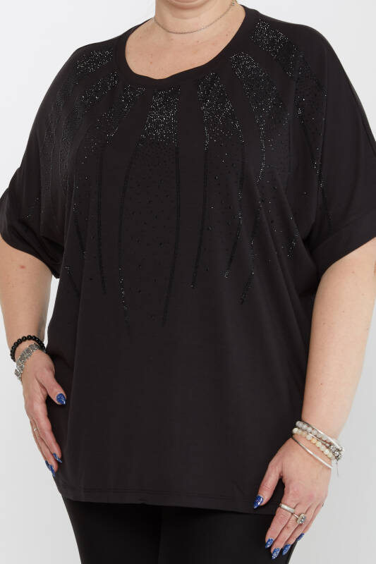 بلوز سنگ دوزی آستین کوتاه مشکی - 79604 | KAZEE (مجموعه 4 M-L-XL-2XL)