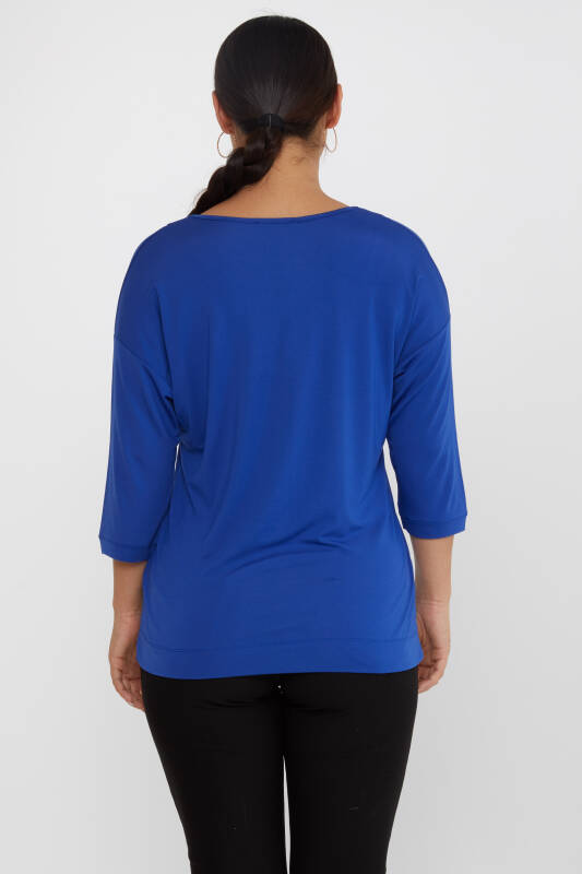 بلوز V یقه ساکس سنگی - 80029 | KAZEE (مجموعه 3 عددی L-XL-2XL)