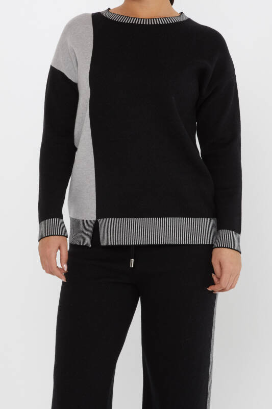 Costum dublu în dungi în două culori, în talie legată negru-gri - 31010 | KAZEE (Set de 2 L-XL)