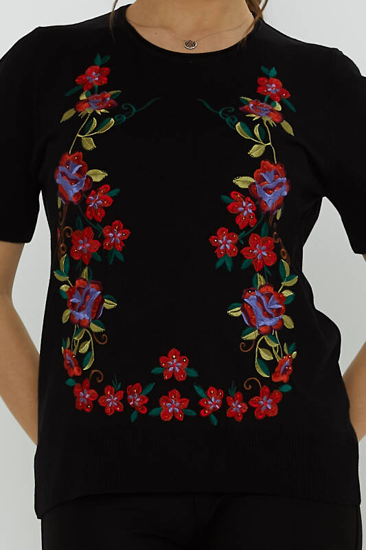 ژاکت بافتنی گل دوزی سنگ دوزی مشکی - 31728 | KAZEE (ست 3 L-XL-2XL)