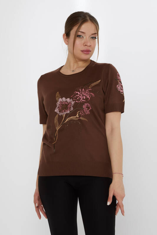 ژاکت بافتنی گل دوزی سنگ دوزی قهوه - 31725 | KAZEE (مجموعه 3 عددی L-XL-2XL)