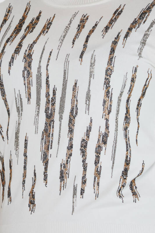 ژاکت بافتنی سنگ پلنگ دوزی یقه ایستاده اکرو - 31565 | KAZEE (ست 3 M-L-XL)