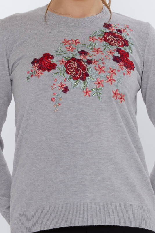ژاکت بافتنی رز سنگ دوزی خاکستری دوزی - 31377 | KAZEE (مجموعه 3 عددی L-XL-2XL)